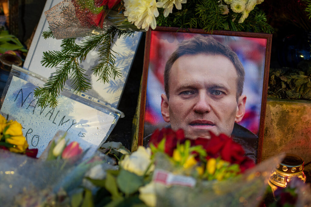 20 février 2024: Fleurs et bougies posées au mémorial spontané de Vilnius en l’honneur d’Alexei Navalny. Opposant politique à Vladimir Poutine, il est mort en prison le 16 février 2024. © Depositphotos