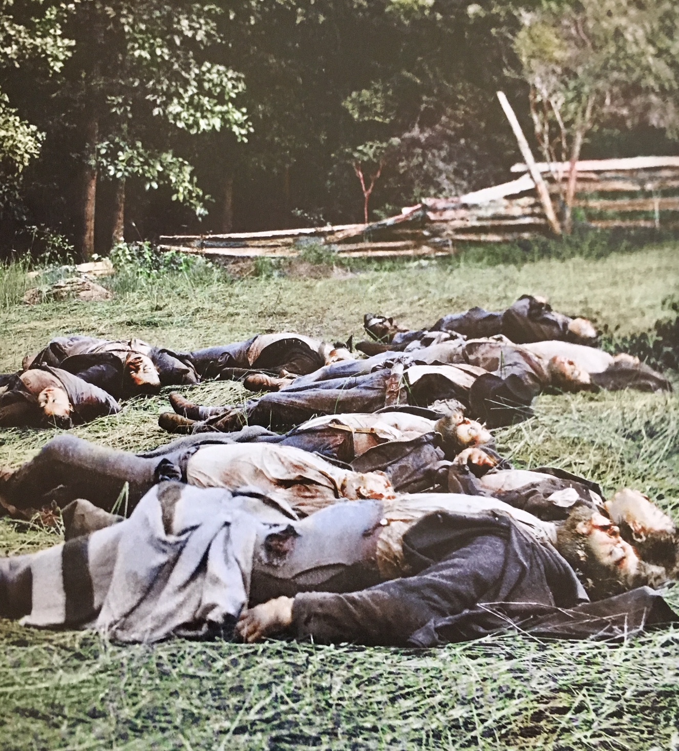 Lorsqu’on regarde les photographies des combats de la Première Guerre mondiale, des tranchées de Verdun et du Chemin des Dames, ou, plus près de nous, des camps de la mort, elles sont, comme on le sait, le plus souvent en noir et blanc. Au point qu’il nous est bien difficile aujourd’hui d’imaginer que le ciel au-dessus d’Auschwitz, comme une insulte aux victimes, pouvait être bleu et que, sur les branches des arbres du bois Belleau épargnées par la mitraille et les éclats d’obus, les feuilles étaient vertes, neuves encore du printemps tout proche. Et que dire des rares images de la guerre de Crimée et de la guerre de Sécession, dues aux tout premiers reporteurs de guerre? Il est plus mal aisé encore de se représenter par la pensée les taches colorées formées par les soldats dans leurs uniformes chatoyants tombés sur les champs de batailles. Mais pas seulement.