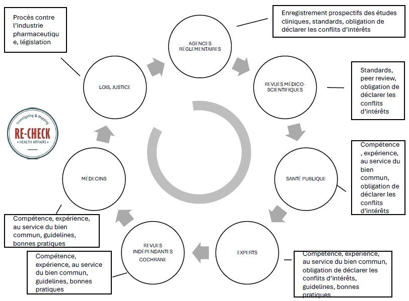 Dans nos sociétés industrialisées, les questions liées aux produits pharmaceutiques et aux mesures de santé sont gérées dans le cadre d’un système articulé autour de plusieurs instances: autorités réglementaires, revues médico-scientifiques, comités d’experts, organes de santé publique, bulletins médicaux, corps médical, sociétés savantes, corps législatif et justice. C’est sur ces instances que les citoyens se reposent, partant du principe que si ces dernières ont autorisé et recommandent une mesure de santé (médicament, vaccin, mesure préventive, test), c’est qu’elles ont la preuve qu’elle est efficace, sûre et appropriée. Ces instances fonctionnent comme des garde-fous complémentaires qui se contrôlent réciproquement. En principe, le système est ainsi conçu que si l’un de ces acteurs ne joue pas son rôle, les autres peuvent intervenir et corriger ses manquements. Et dans les démocraties libérales, d’autres pouvoirs sont supposés avoir la capacité de réagir, de confronter les responsables et d’induire des corrections: la société civile et les médias.