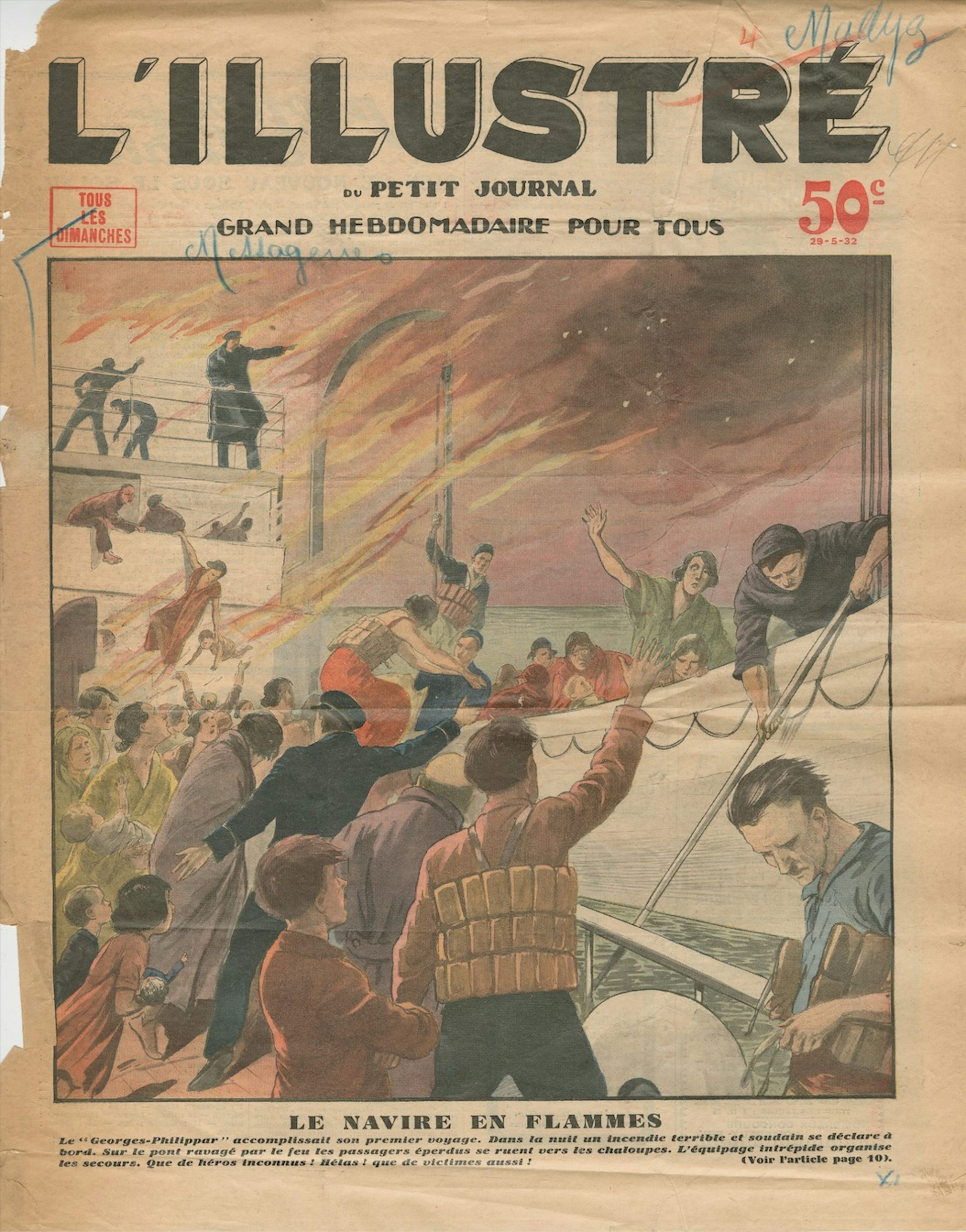 Le naufrage a eu un fort retentissement dans les médias de l’époque. Ici, la Une de l’hebdomadaire L’Illustré du 29 mai 1932. Collection French Lines & Compagnies