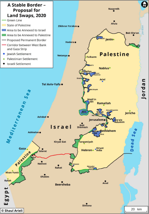 • Grâce à des échanges territoriaux dans une proportion de 1 pour 1, près de 80% des colons vivraient à l’intérieur des frontières d’Israël à la suite d’un accord de paix.