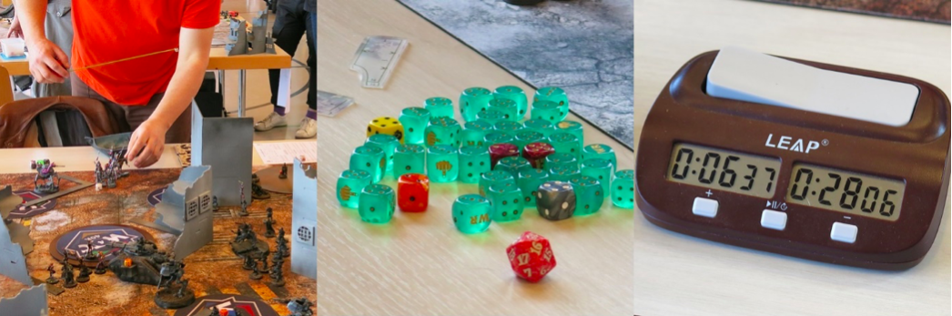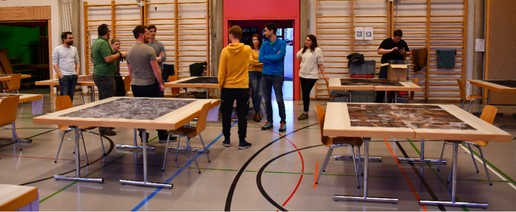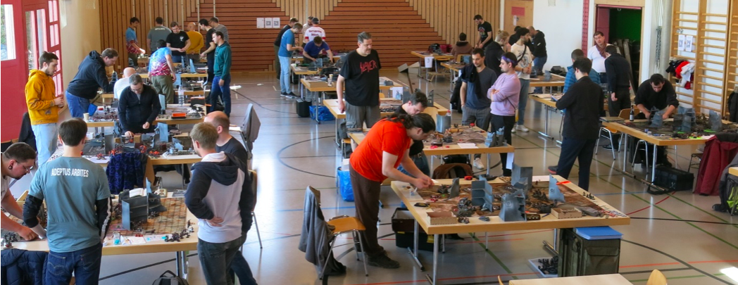 La journée va être longue, trois rounds de combats, trois rounds de 3 heures 30. Sur chaque table, des figurines, un décor. L’imagination est fertile, la créativité présente, le futurisme au rendez-vous (le futurisme pour mémoire est aussi un mouvement littéraire et artistique du début du XXème siècle qui rejette toute tradition passée et exalte le futur). Les joueurs créent et peignent leurs figurines comme les anciens créaient les soldats de plomb, la filiation n’est pas rejetée. Le décor est planté avec le soin d’un maquettiste de trains électriques. La bataille peut commencer.