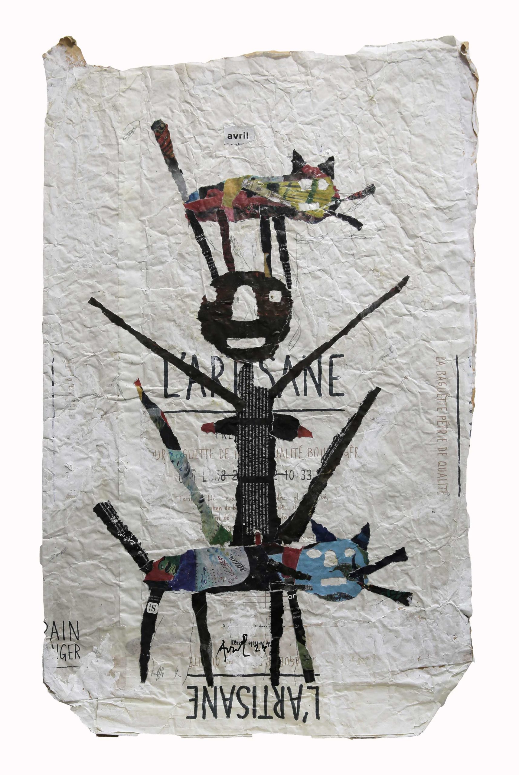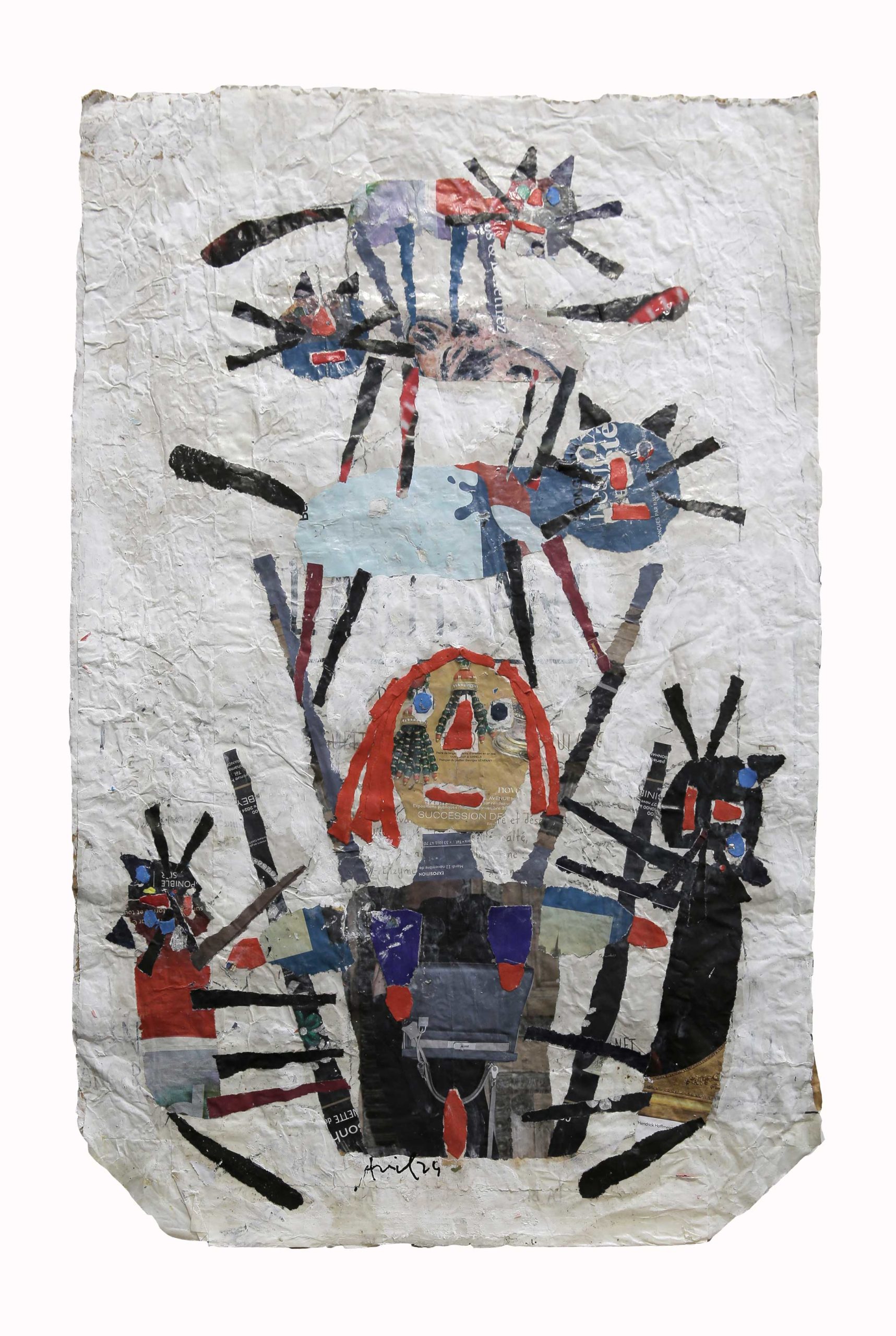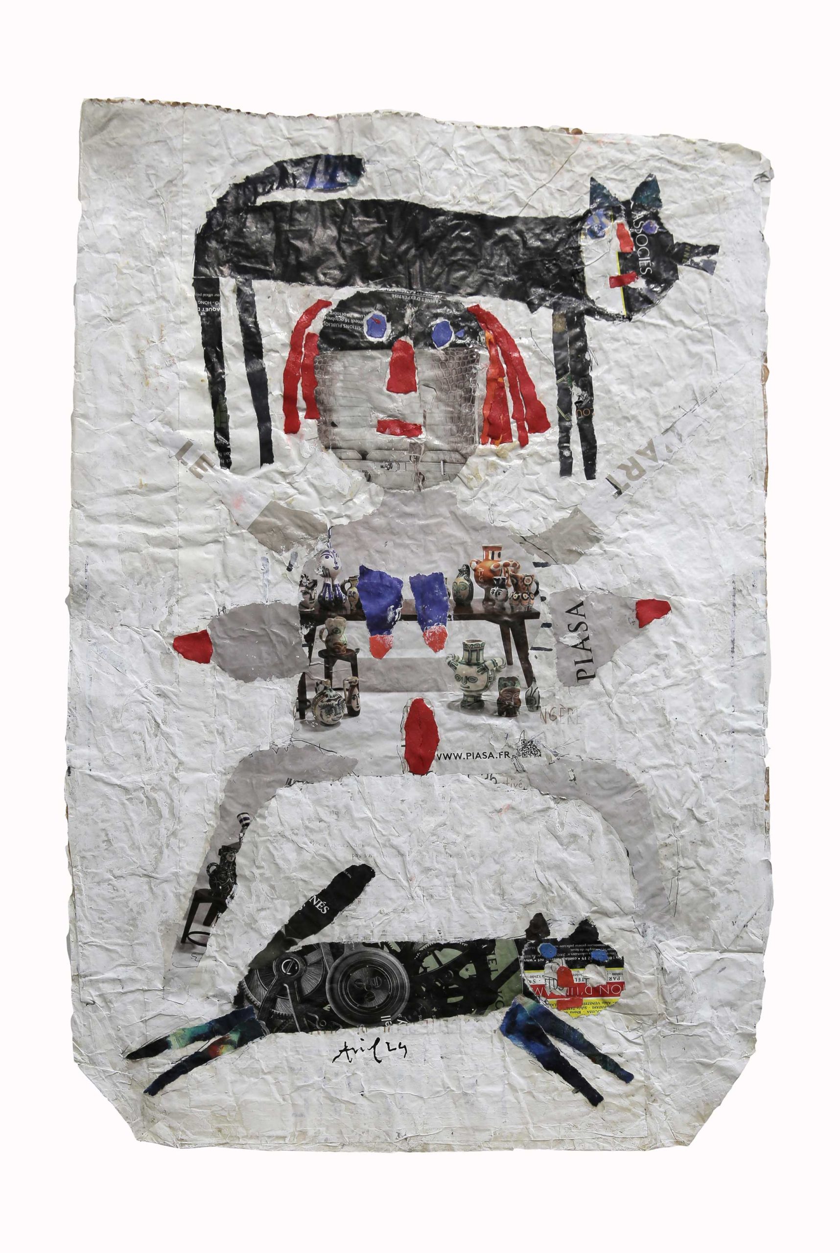 A 99 ans, l’artiste lyonnais expose ses nouvelles créations à la galerie RichterBuxtorf de Lausanne. Des chats et des chattes, et aussi des palmiers à la forme sans équivoque. Diverses techniques sont utilisées – peinture, collages, encre… – et les supports sont d’anciens sacs de farine ou des pages de magazines. Bienvenue dans le joyeux monde d’un irréductible esprit libre.