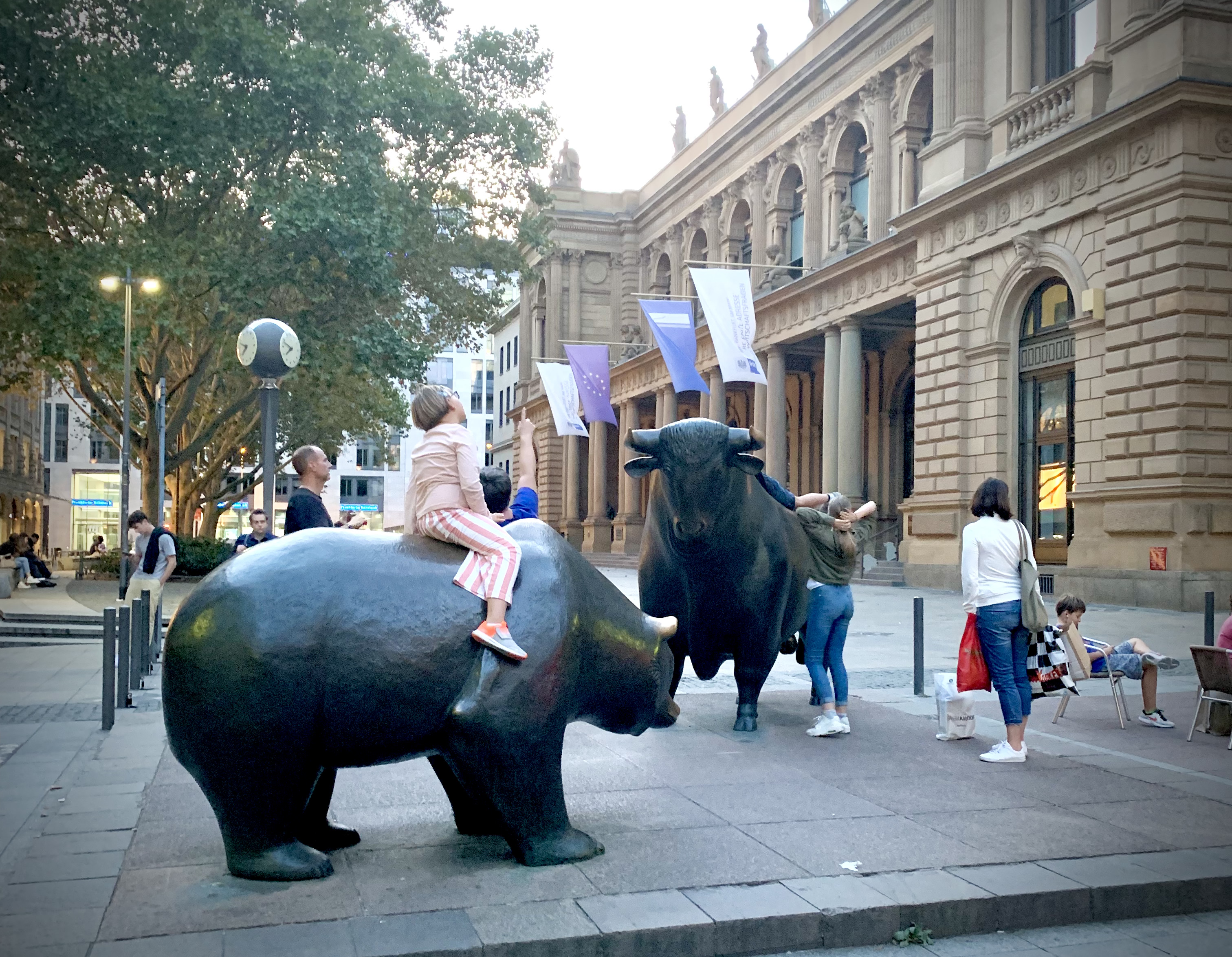 Bull et Bear devant la Bourse allemande à Francfort sur le Main, Allemagne © Eugénie Rousak