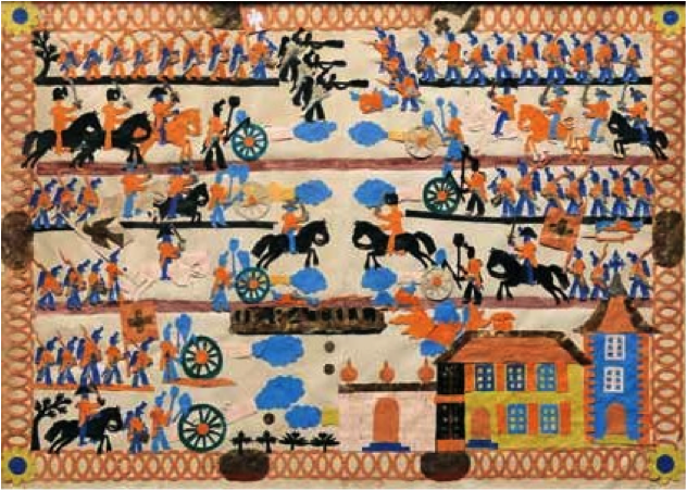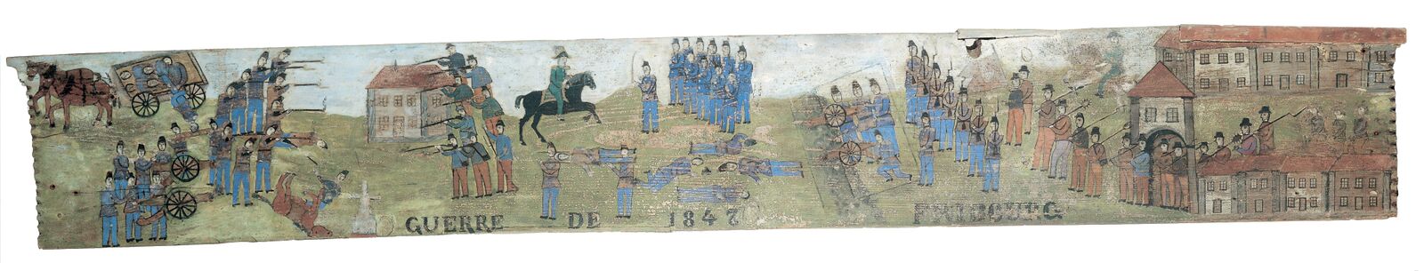Une peinture naïve opposant l’armée fédérale aux troupes fribourgeoises en 1847.