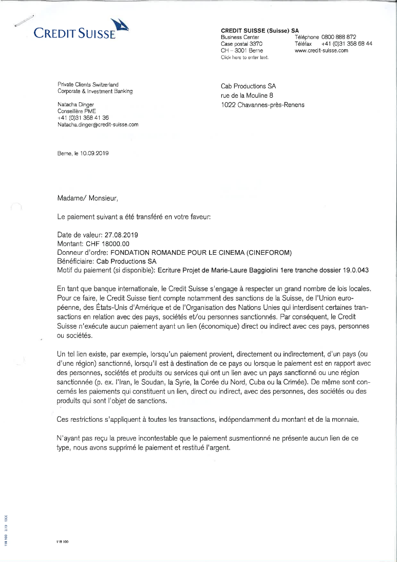 Le Crédit suisse censure le cinéma