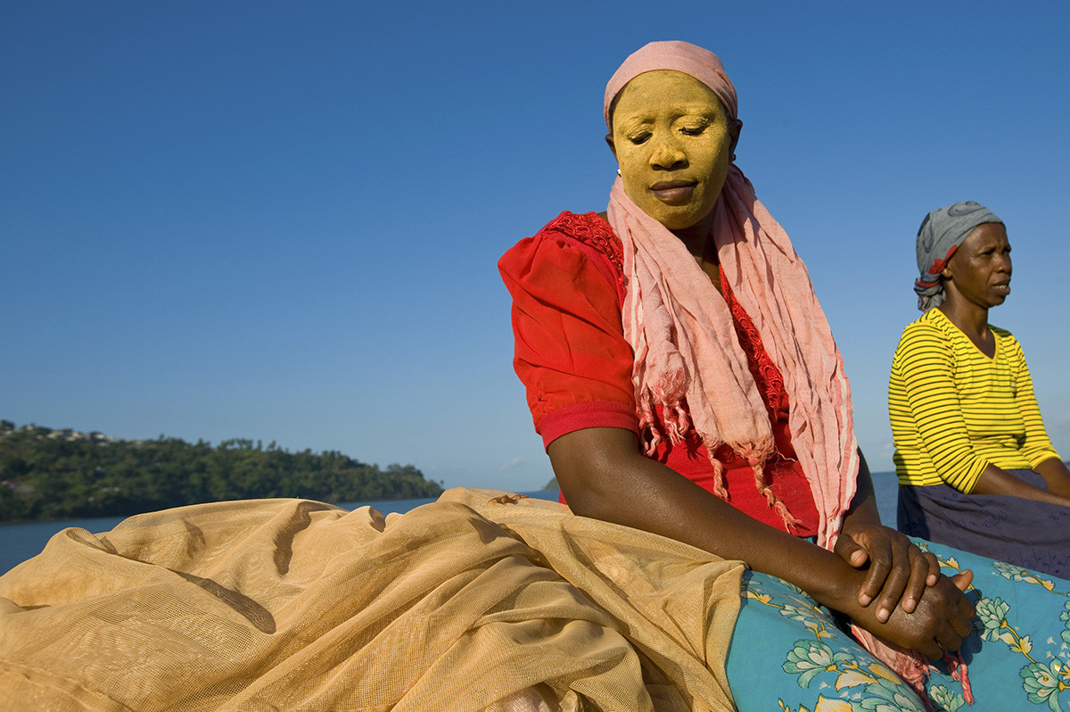 Femmes portant le M’sindzano, le maquillage traditionnel, à la pêche. © Stephan Engler