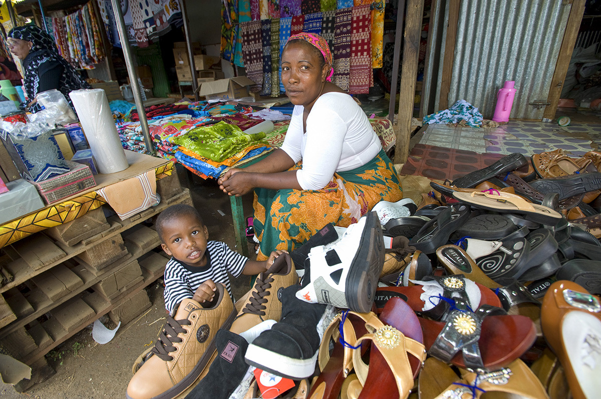 Une vendeuse de chaussures sur le marché. © Stephan Engler