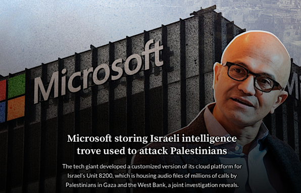 Selon des révélations étayées par des sources issues de la multinationale américaine et des services secrets israéliens, un cloud spécial a été mis en place pour intercepter les communications de millions de Palestiniens. Des données qu'Israël utilise pour mener sa guerre de représailles ethniques dans la bande de Gaza et en Cisjordanie.