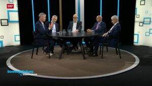La télévision alémanique a diffusé un débat sur le thème «Israël va-t-il trop loin?» entre deux anciens diplomates suisses et deux soutiens d’Israël. Les participants ont échangé leurs points de vue, parfois extrêmes, sans réussir à se mettre d’accord.