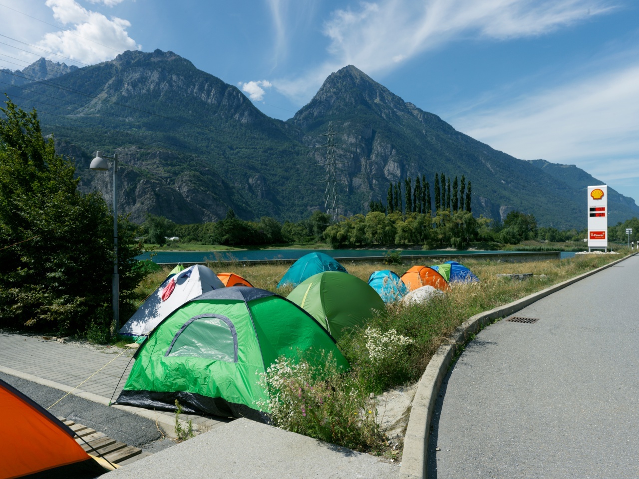 En plus des éléments classiques d’une aire autoroutière, le Relais du Saint-Bernard et sa zone de loisirs réunissent sur un kilomètre carré toutes les caractéristiques du Valais: lacs, plages, carrière, éolienne, ponts, tunnels, rivière, canal, cultures maraîchères et viticoles mais encore un parc d’attraction à la thématique du western. «Des lieux sublimes. Il ne manque que la montagne!»