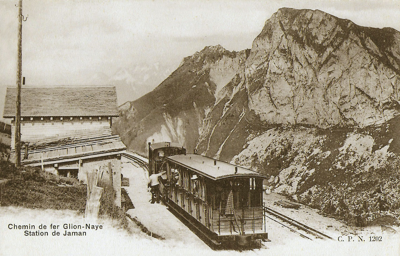 Début 1900, le Glion-Naye à la Station de Jaman. © DR