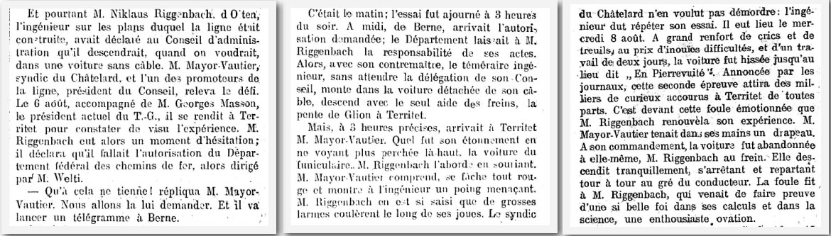 Ils avaient un culot et une détermination inouïes. Trois entrepreneurs de Montreux, Georges Masson, Ami Chessex et Alexandre Emery, obtiennent une concession pour cette liaison en 1880. Un an plus tard, ils commencent les travaux. Et en juillet 1892 déjà, la ligne à crémaillère longue de 7,7 kilomètres est inaugurée!