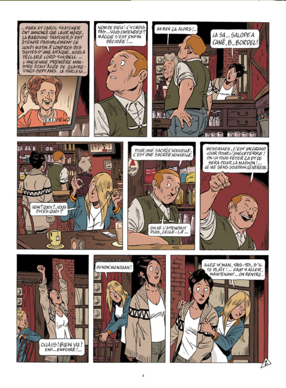 Margaret Thatcher et son ultralibéralisme économique n'ont pas laissé un très bon souvenir aux classes laborieuses britanniques. Aux personnages de la BD «La dame de fer» non plus. Ils vont célébrer sa mort à leur manière, prenant enfin leur revanche.