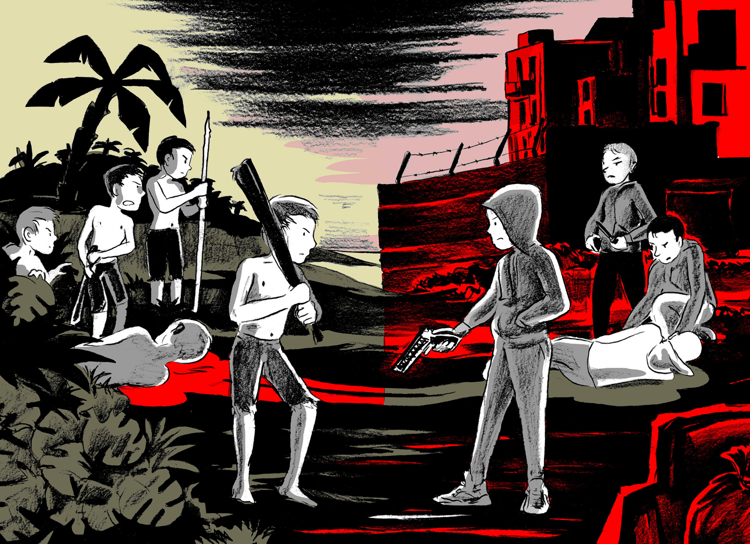 Le roman de Roberto Saviano, «Pirahnas», nous plonge dans l’univers des baby-gangs napolitains qui en remontrent aux pires mafieux. Des ados retombés dans la barbarie de «Sa majesté de mouches», roman anglais de William Golding et film de Peter Brook datant du début des années 60, aux «tueurs nés» italiens, la régression semble cependant contaminer jusqu’à la «dénonciation» du phénomène...